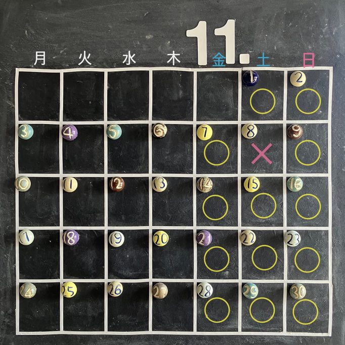 黄色い◯のついた日が営業日です。